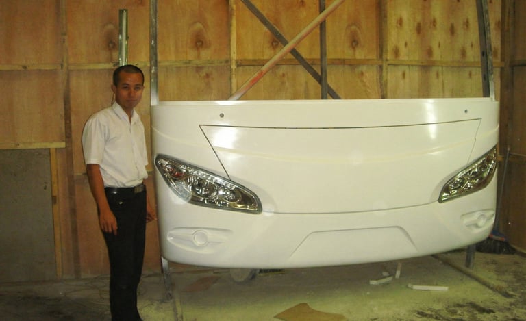 A moment from the prototype workshop where the first-generation Jetbus identity took physical form. Full-scale panel development helped refine the front-face character, ensure clean lamp integration, and confirm the final stance before production.