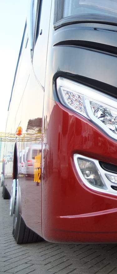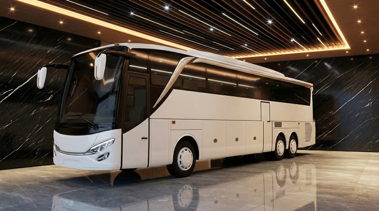 Jetbus 2 presents a modern, premium front character, enhanced by aerodynamic surfacing that makes the form feel lighter and more futuristic. The dominant windshield and clean front composition create a bold, instantly recognizable identity strengthening the Jetbus signature at first sight on the road.