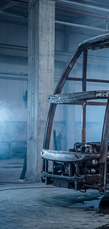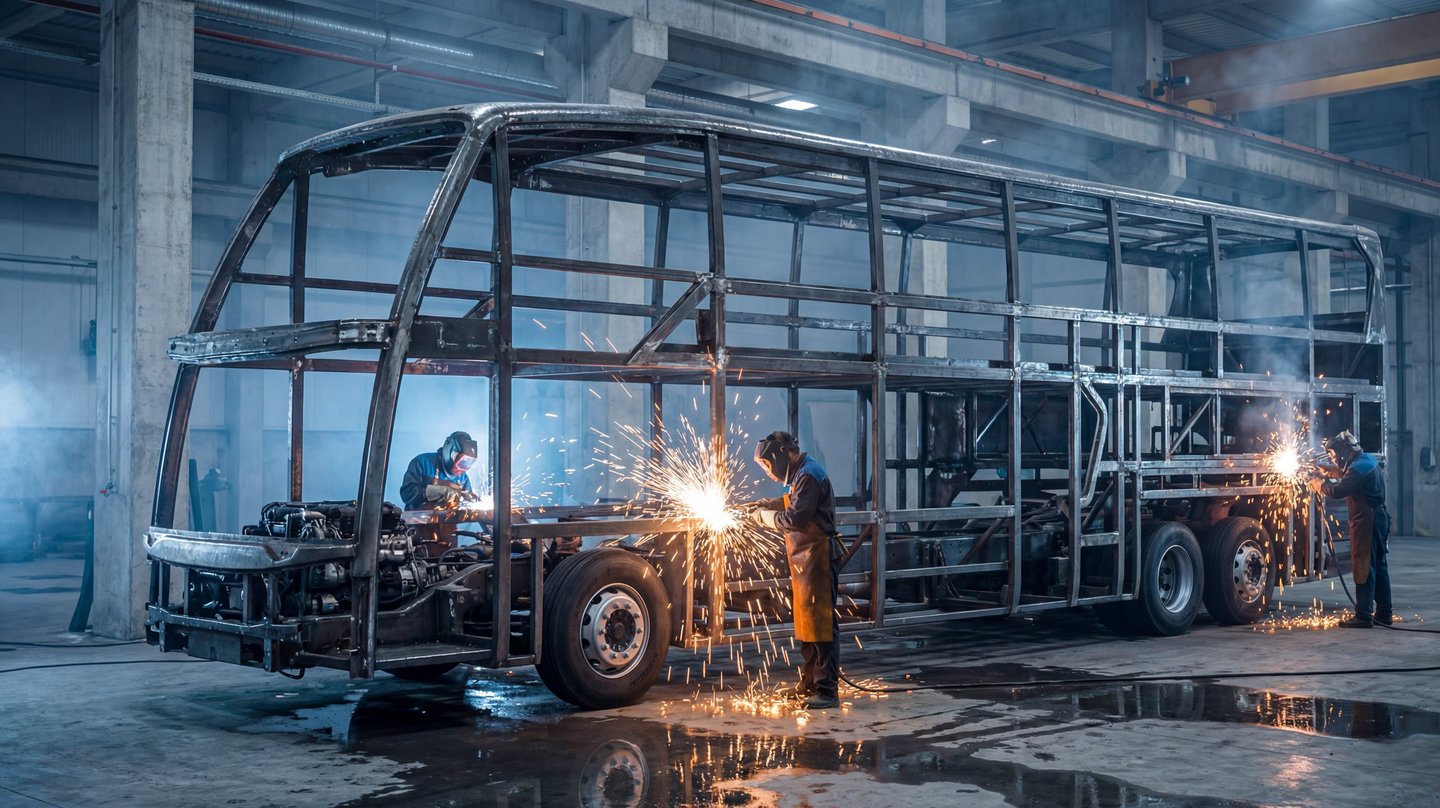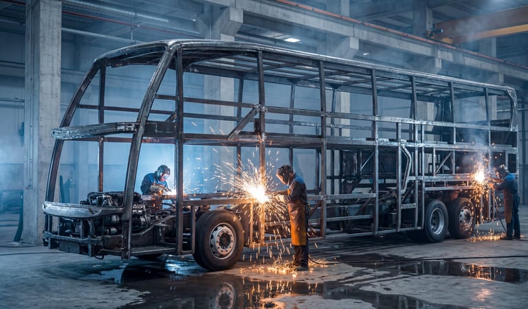 AI visualization illustrating the manufacturing process of the Jetbus 3 structural frame and chassis.