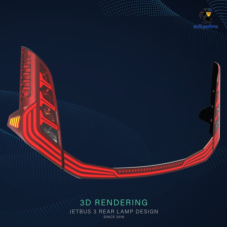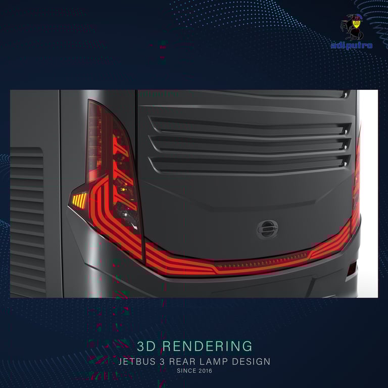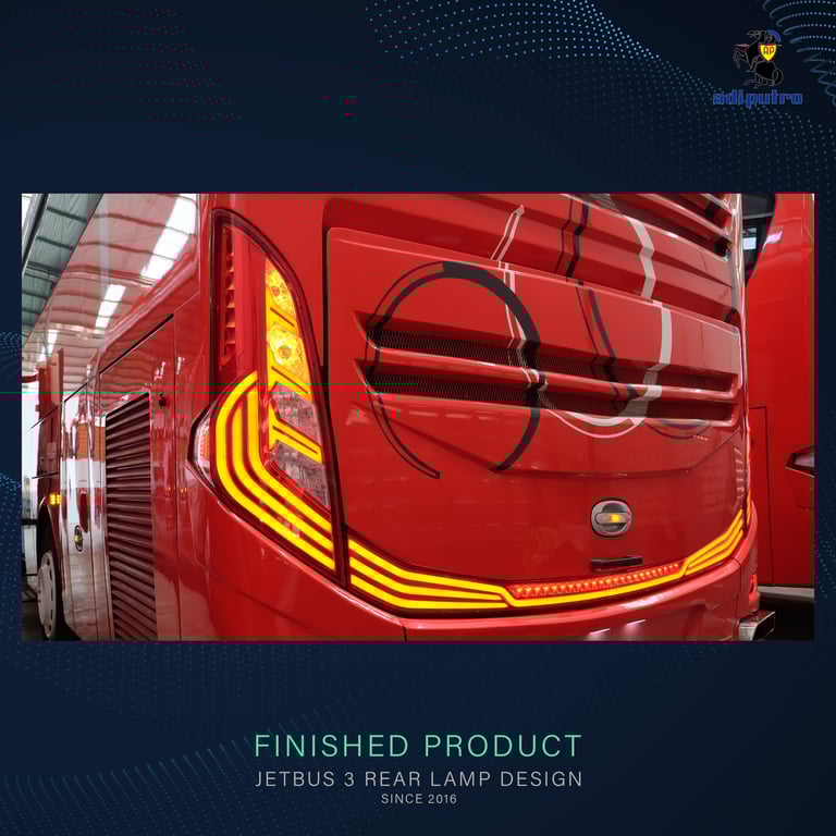 Jetbus 3 marks a pivotal phase in the Jetbus design journey—moving beyond mere form development toward a more mature, original, and character-driven design identity. The most significant innovation lies in the front and rear lighting design: for the first time in Adi Putro’s history, the lighting was designed entirely in-house by the internal design team, while also becoming the first bus to implement sequential lighting technology.