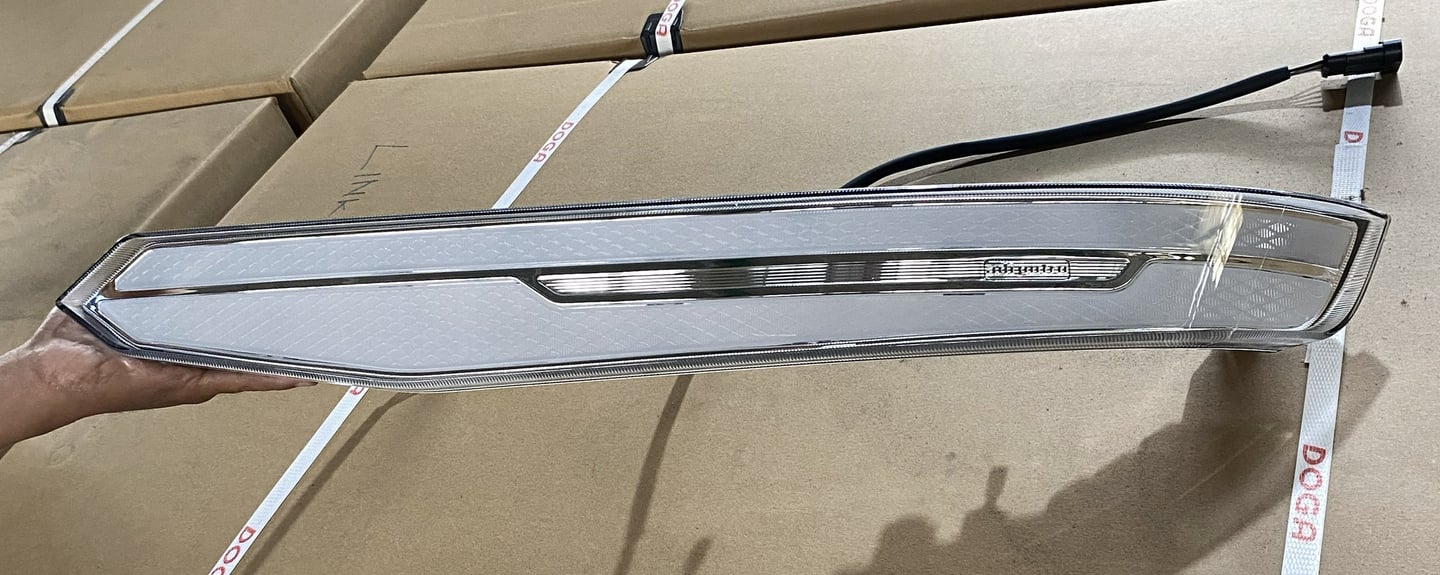 The Daytime Running Light (DRL) is positioned at the upper section, serving as a strong visual signature that defines the character of the vehicle. Meanwhile, the main headlamp is placed within the bumper area, creating a more dynamic proportion while reinforcing a high-tech appearance.