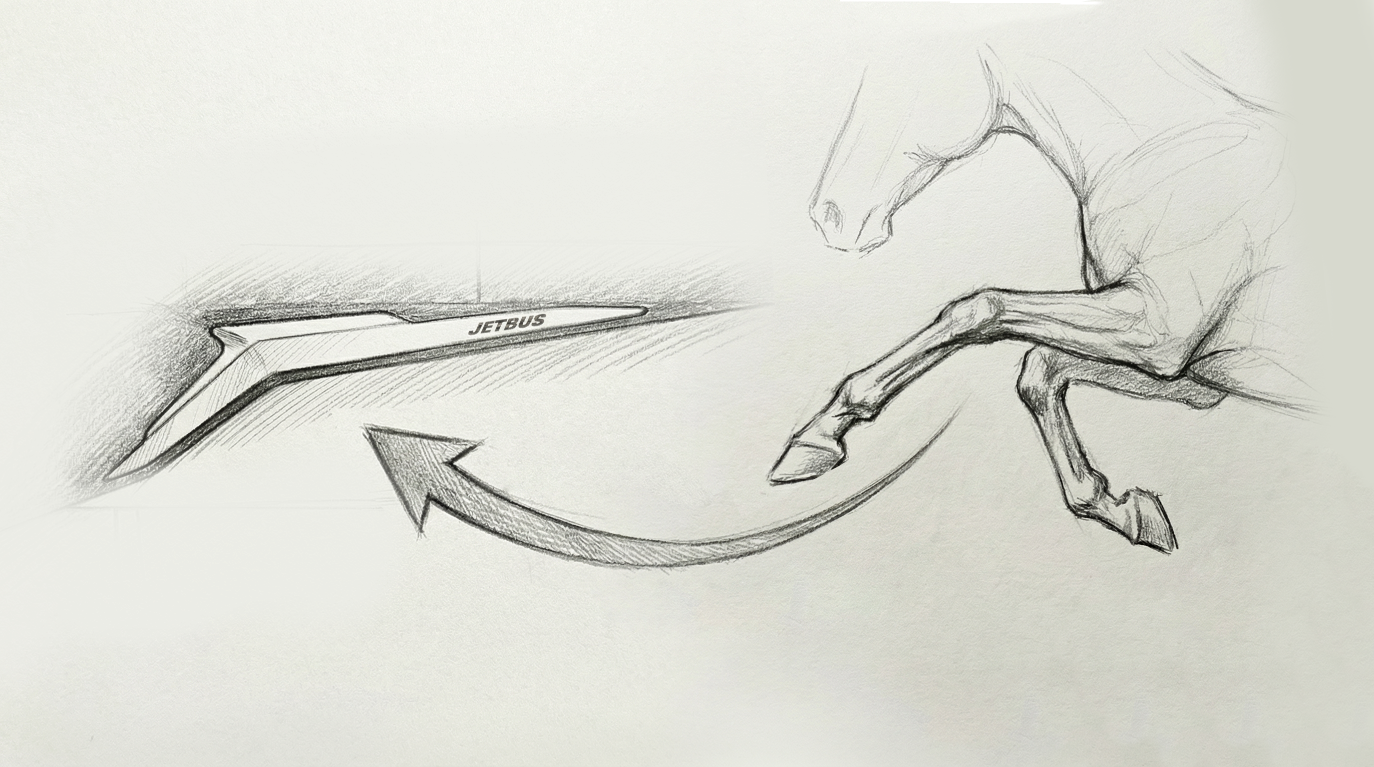 The upper side design variation of Jetbus 5 is inspired by the lance of a mounted knight, an symbol of direction, speed, and courage.