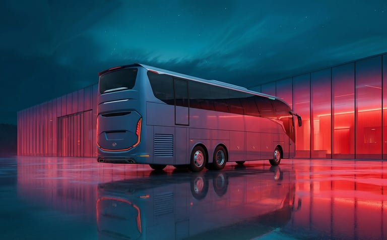 This gallery presents the Jetbus 5 SHD in a cinematic studio environment, where bold geometry, vibrant lighting, and refined surfaces come together to express its progressive design character.