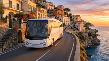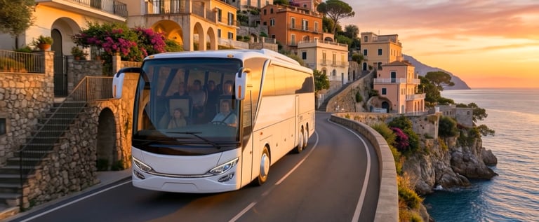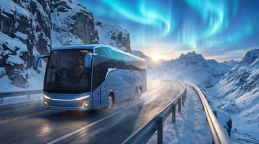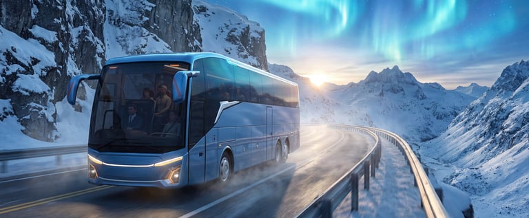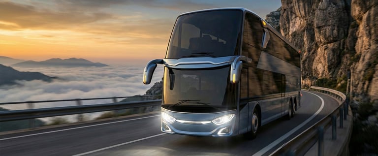Futuristic coach with clean surfaces and assertive stance; exploration of long-body flow and light graphics.