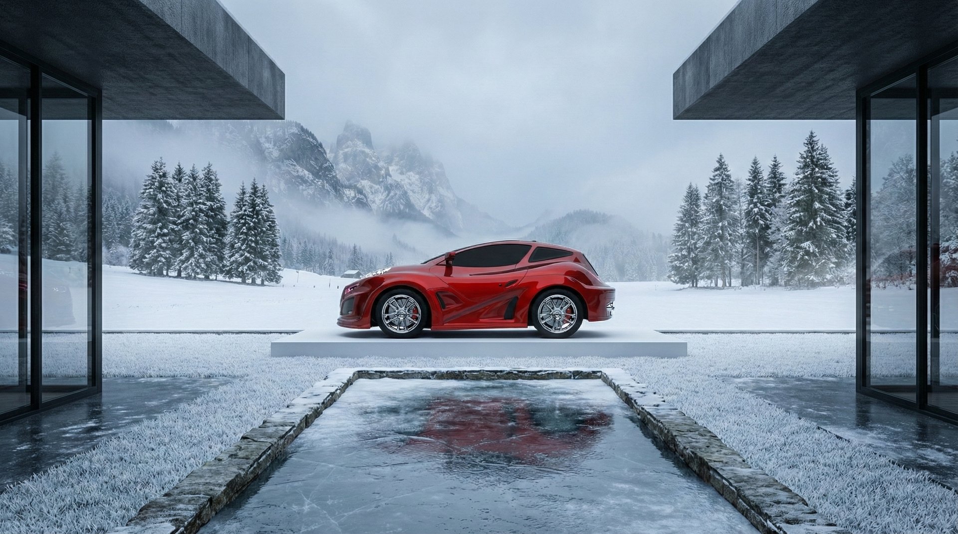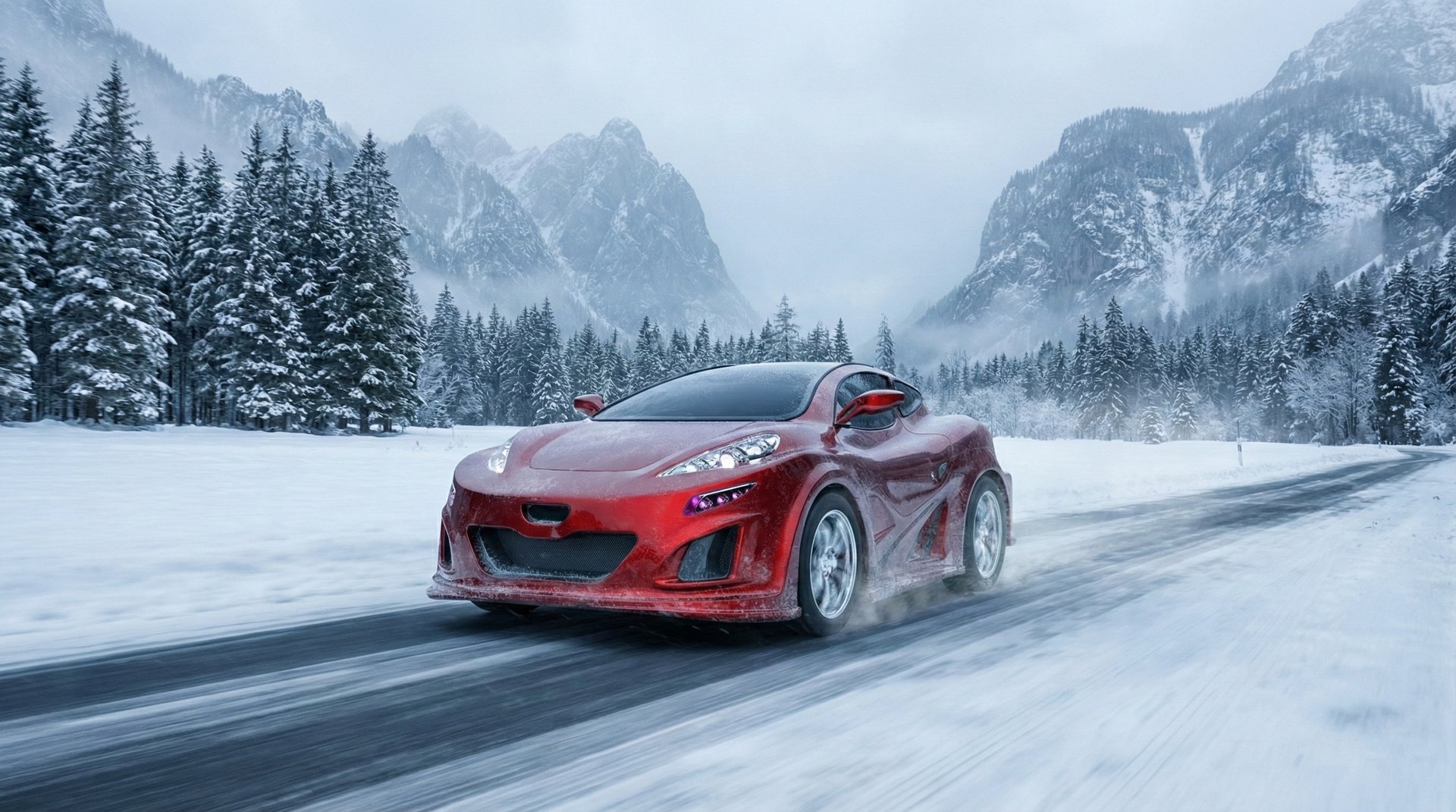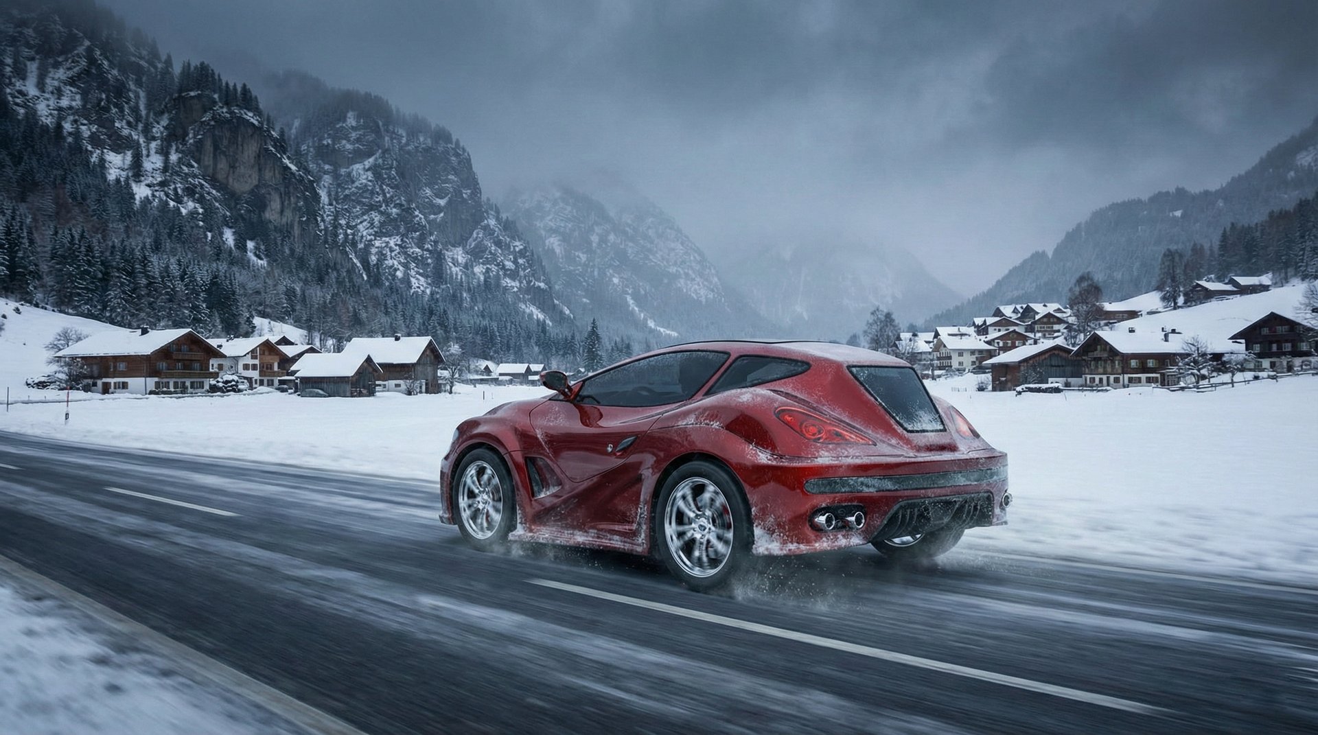 AI visualization of an experimental concept on an Alpine mountain pass.