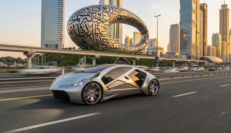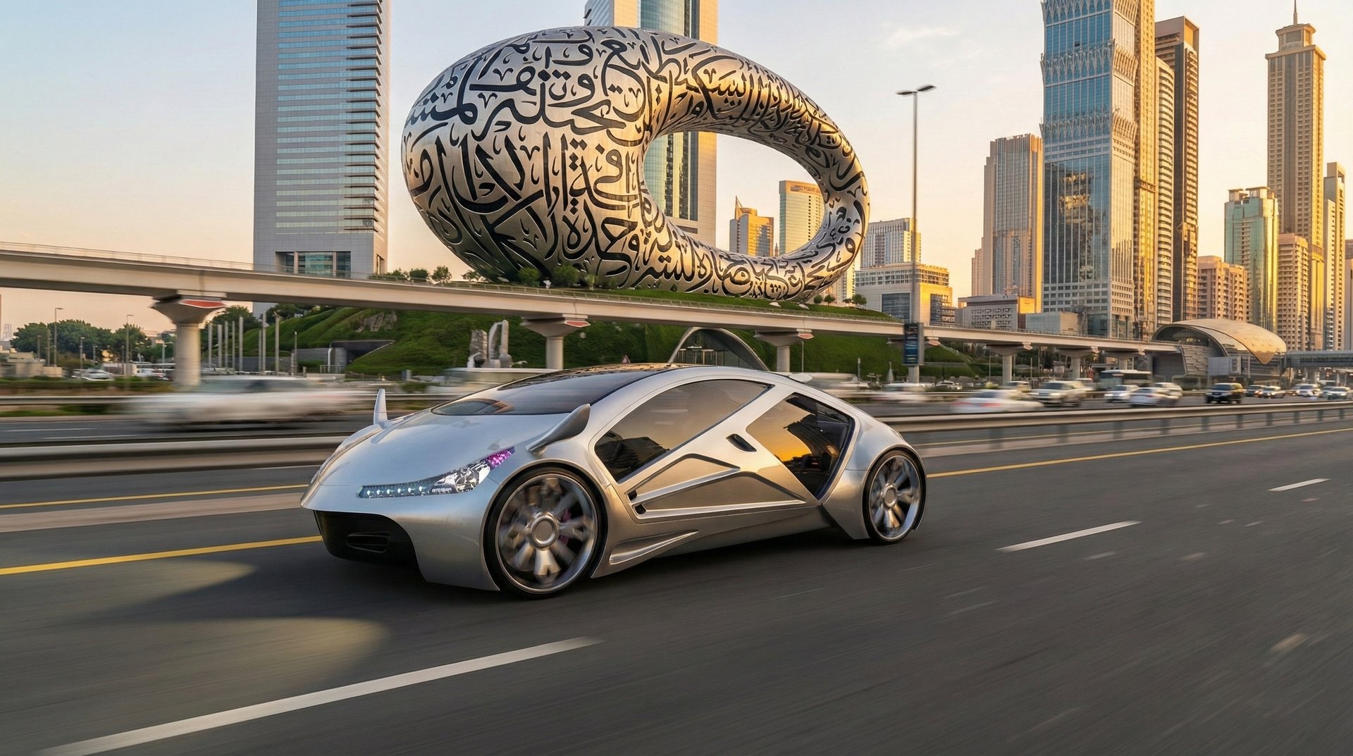 AI visualization of an experimental concept on Dubai’s desert highways.