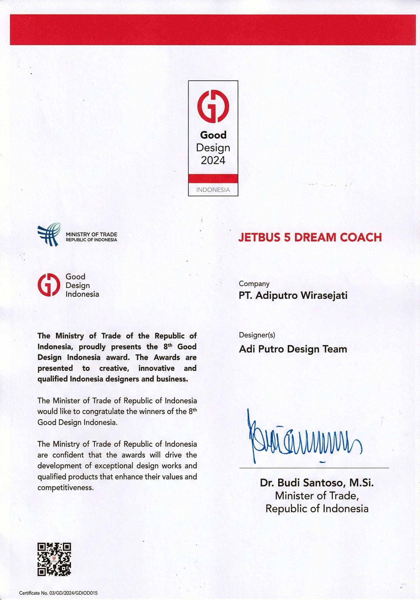 Recipient of the Good Design Indonesia Award 2024