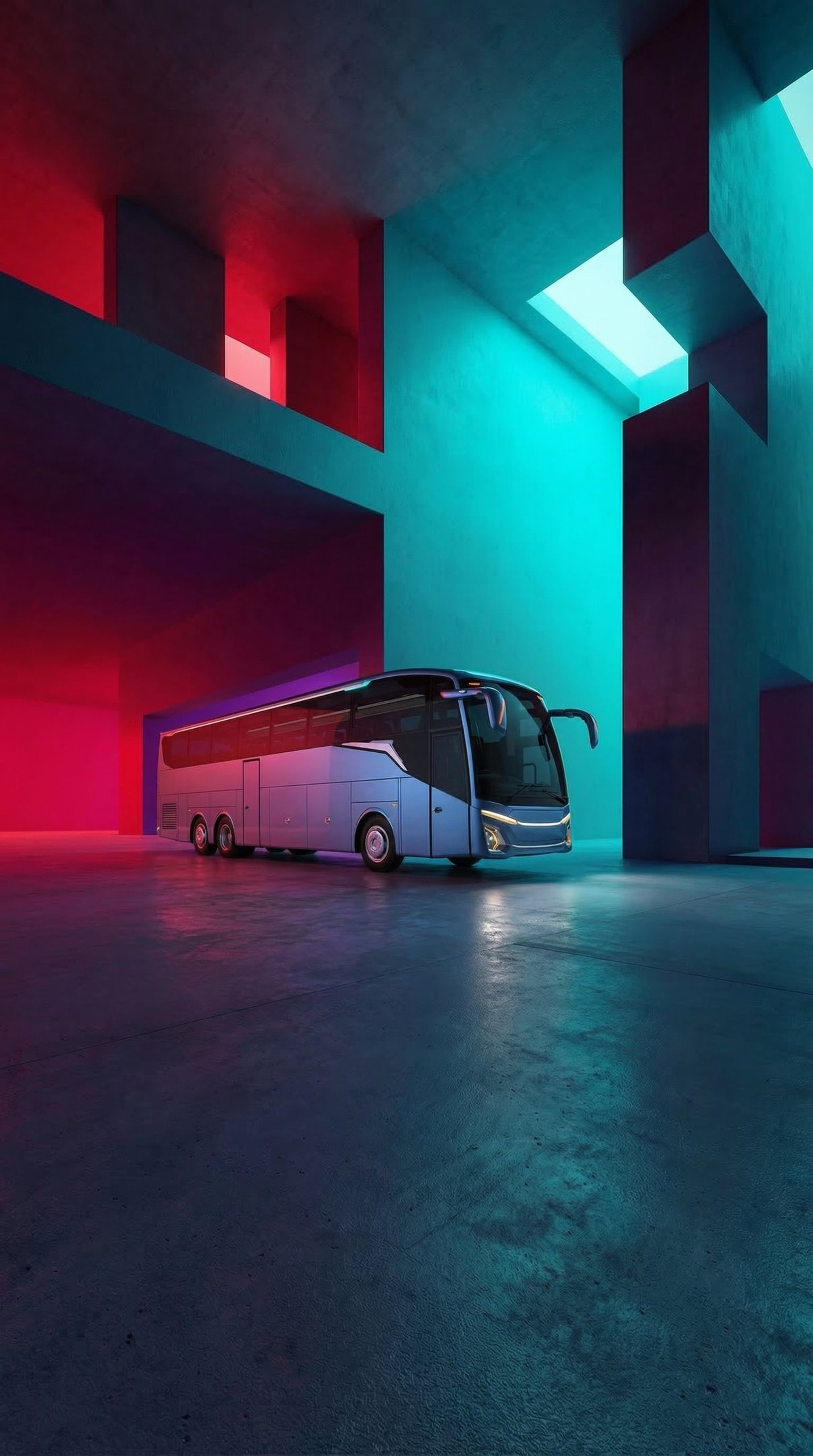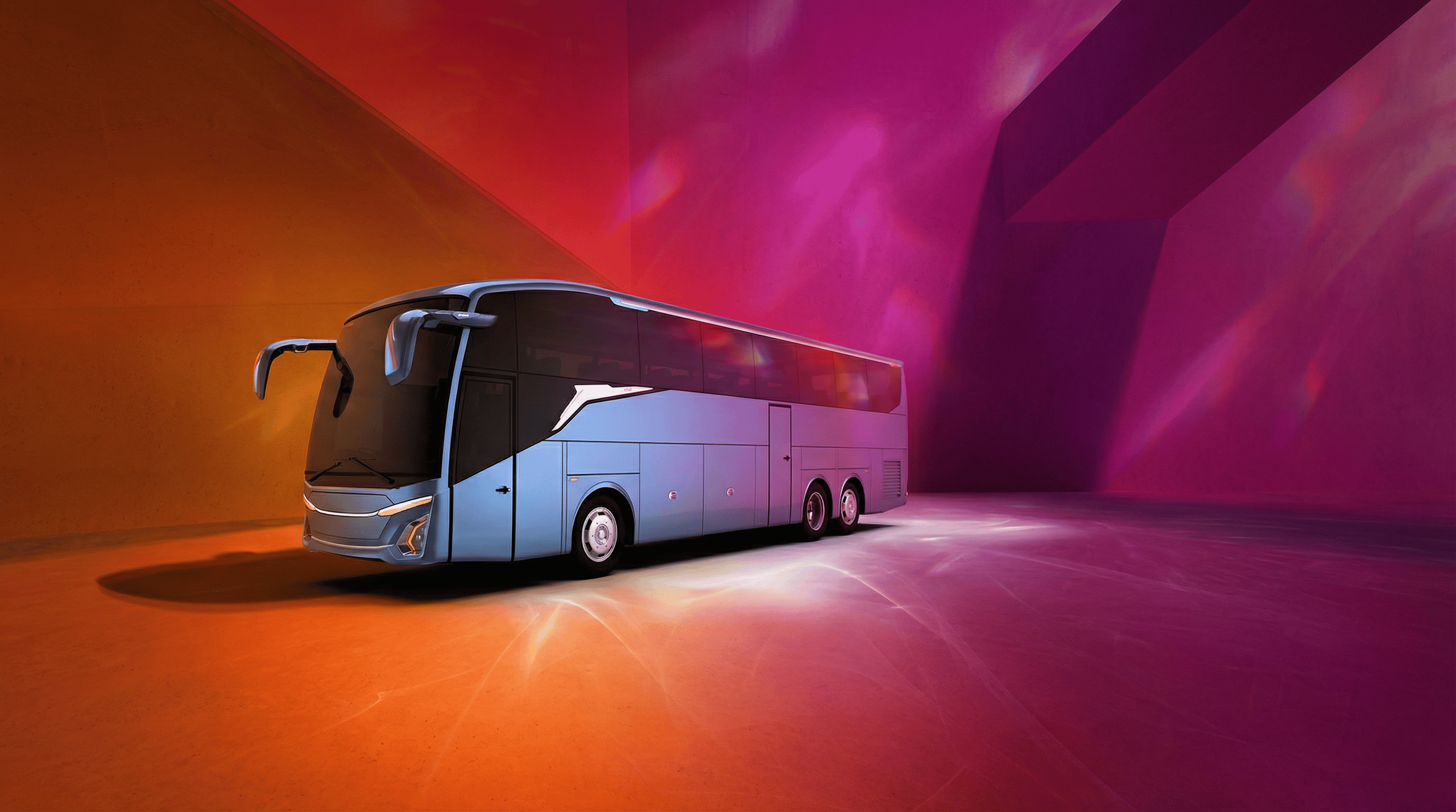 This gallery presents the Jetbus 5 SHD in a cinematic studio environment, where bold geometry, vibrant lighting, and refined surfaces come together to express its progressive design character.