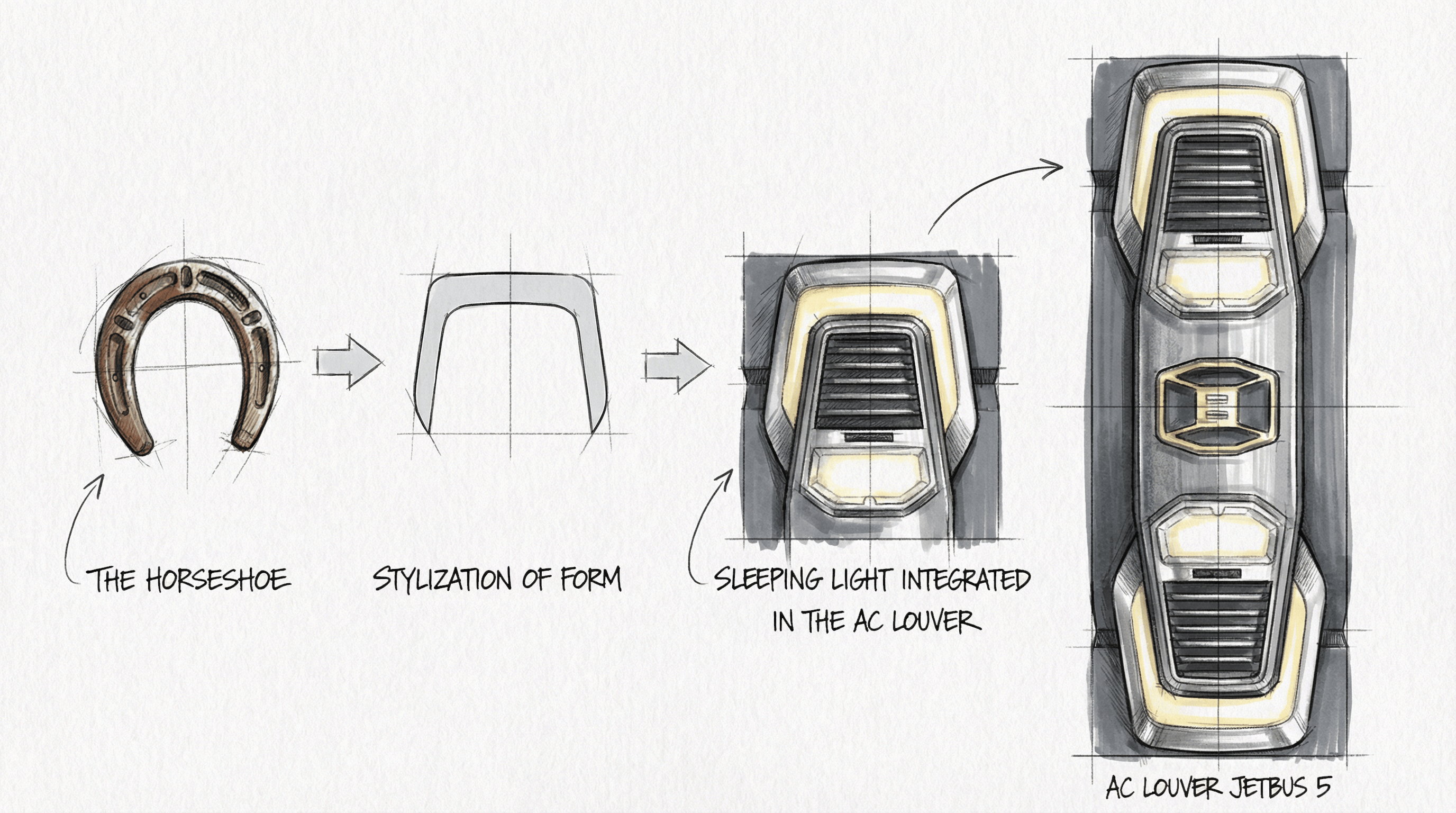 Inspired by the horseshoe, a timeless symbol of endurance and travel, the sleeping light is subtly stylized into the louver design. This gentle illumination reflects the Jetbus 5 philosophy, where exterior character and interior comfort are seamlessly connected.